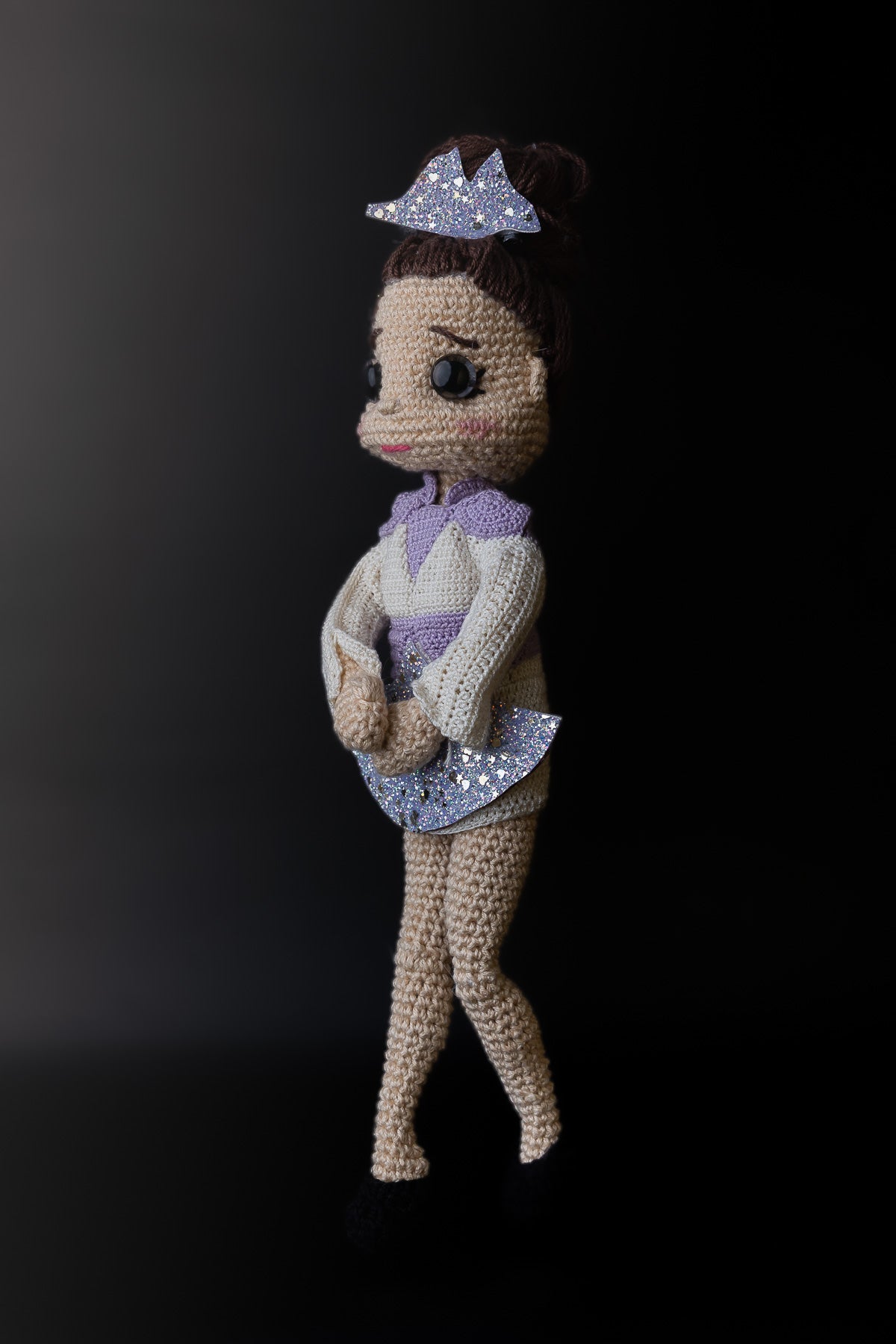 Draíocht captures the enchanting illusion of a dancer who appears to float. Her expression is mysteriously serene, and her inaugural gown is ethereal, made with fine, lace-like crochet in misty lavender and silver, creating a soft, almost otherworldly silhouette that seems to defy gravity.